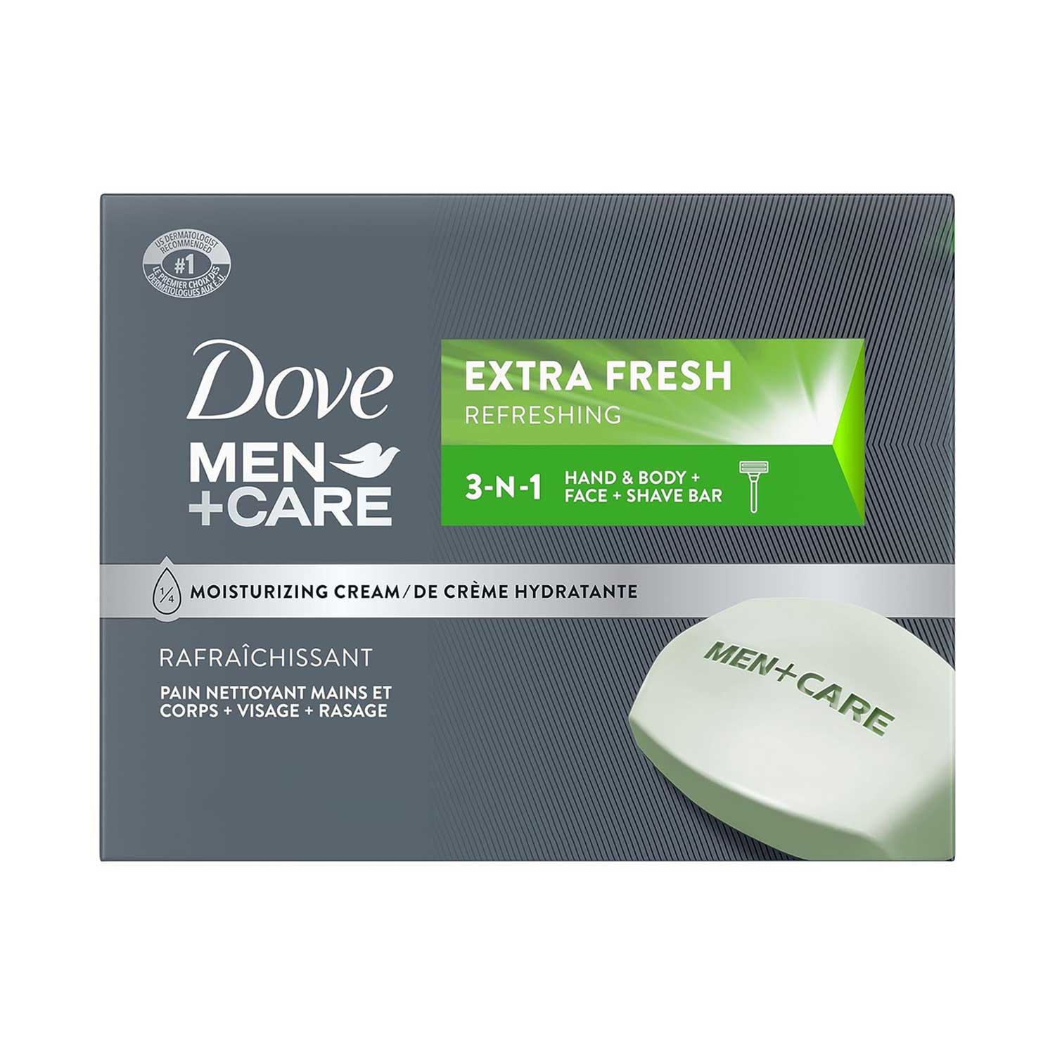 • 3 IN 1 FOR BAR CLEANSER FOR BODY, FACE, AND SHAVING: Dove Men+Care Extra Fresh Body and Face bar formulation is so hydrating and gentle on skin that you can also use it to wash your face or to shave.